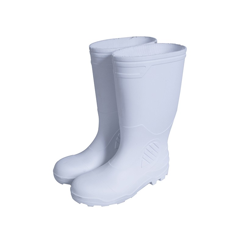 FABRICADAS 100% PVC, CON REFUERZO INTERNO DE ALGODON, RESISTENCIA AL AGUA, DETERGENTES, LODO, FANGO, VAPOR, ETC., SUELA GRABADA ANTIDERRAPANTE Y DESCALZADOR EN TALON, RESISTENCIA A ÁCIDOS CORROSIVOS.