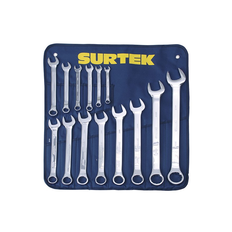 JUEGO DE LLAVES COMBINADAS MÉTRICAS PULIDO ESPEJO EN ESTUCHE CON 14 PZAS. MARCA SURTEK