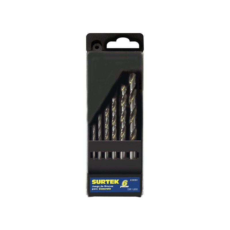 ESTUCHE DE 6 PZAS DE BROCA PARA CONCRETO, CUERPO DE ACERO AL CROMO, PUNTA DE CARBURO DE TUNGSTENO