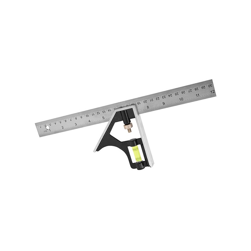 ESCUADRA DE COMBINACION CON ANGULO DE 90º Y 45º, GRADUACION EN CENTIMETROS Y PULGADAS, PROVISTA DE UN NIVEL DE GOTA.