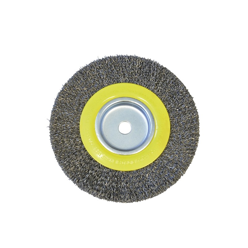 CARDA PARA ESMERIL PARA EJE DE 1/2", MAX. 6,000 RPM, CALIBRE 0.35 MM, ALAMBRE DE ACERO ALTO CARBONO ONDULADO, ELIMINAN OXIDOS, PINTURAS Y ADHERENCIAS EN GENERAL, PARA LIMPIEZA DE SUPERFICIES.