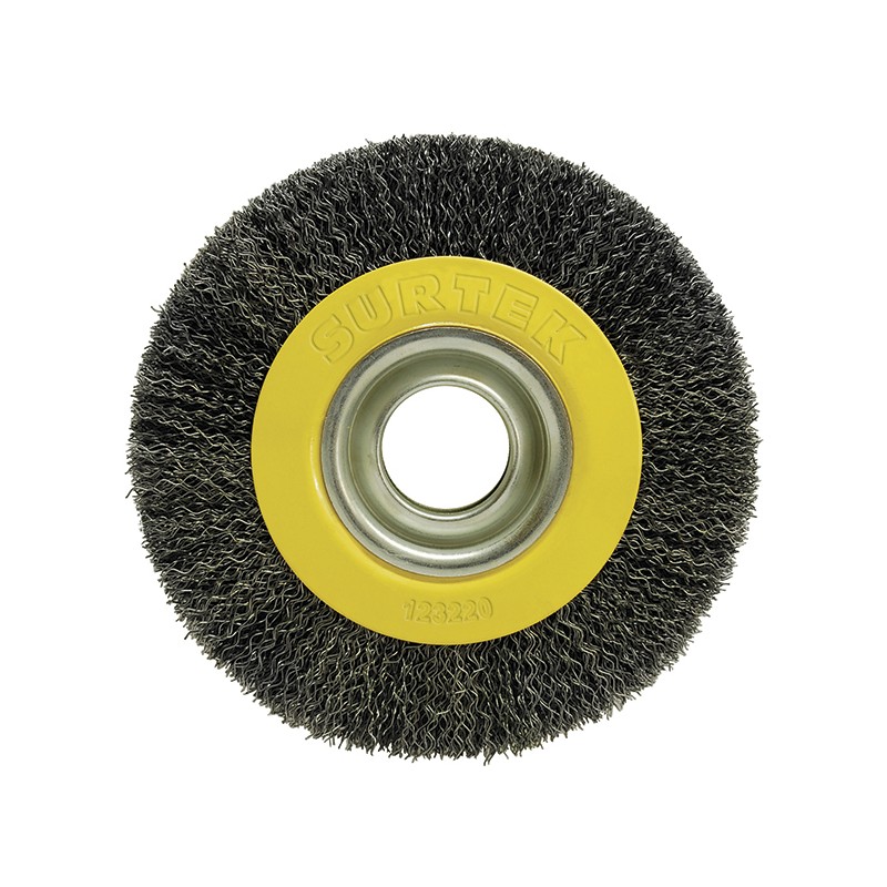 CARDAS PARA ESMERIL ESPESOR DE 3/4" X 6" DE DIAMETRO, MAX. 6500 PRM, CALIBRE 0.35 MM, CENTRO DE 1-1/4", INCLUYE ADAPTADORES, DE 1/2", 5/8", 3/4", 7/8" Y 1". UTILES PARA ELIMINAR REBABAS, CASCARILLAS EN LA FORJA Y ARENAS DE FUNDICION.FABRICADAS EN ACERO Y CARBONO.