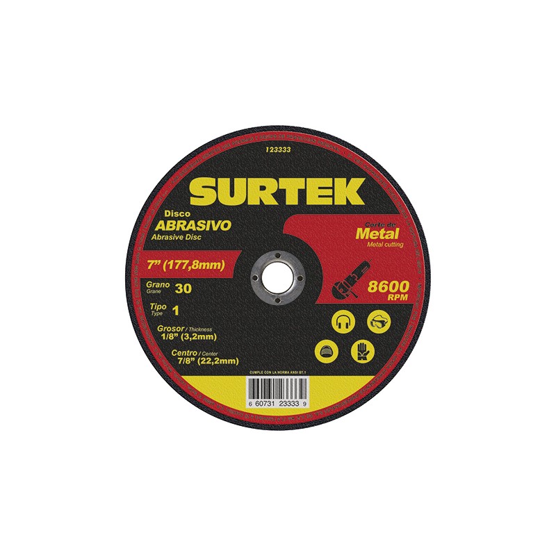 DISCO ABRASIVO PARA CORTE METAL DE 7" ESPESOR DE 1/8", PARA ESMERILADORA ANGULAR, PARA CORTAR HIERRO, TODO TIPO DE ACERO, VARILLA, SOLERA, ÁNGULOS, PERFILES, BARRAS, ETC.